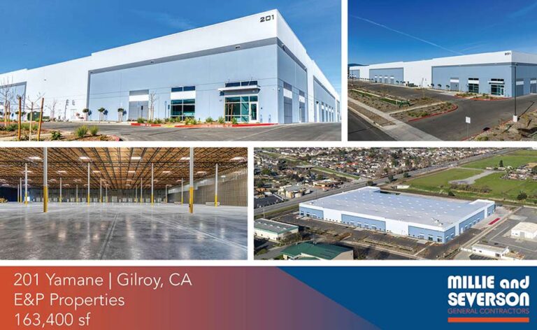 Millie and Severson is proud to announce the completion of a 163,400-square-foot industrial warehouse for E&P Properties in Gilroy, CA, conveniently located near Highway 101. The project was designed by RMW Architecture & Interiors, with civil engineering by Laugenour and Meikle, structural engineering by Mathewson & Associates, Inc., and support from Kelley Commercial, LLC to oversee the project.