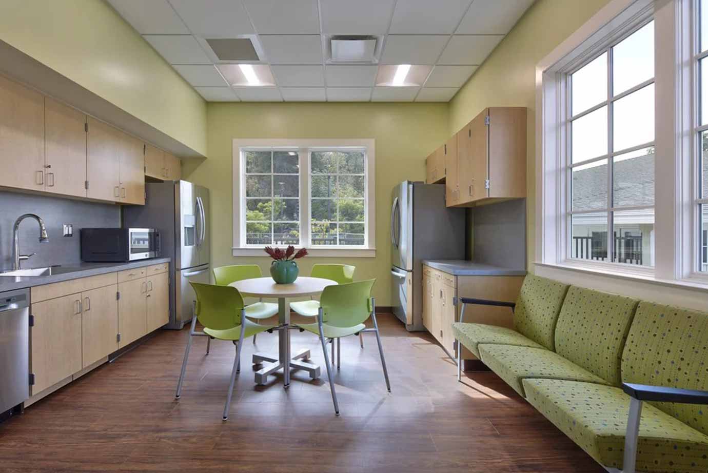 Classroom + recreation facilities for recovering youth, including dining facility, demonstration kitchen, music + arts room, parking structure, swimming pool, playground + playfield